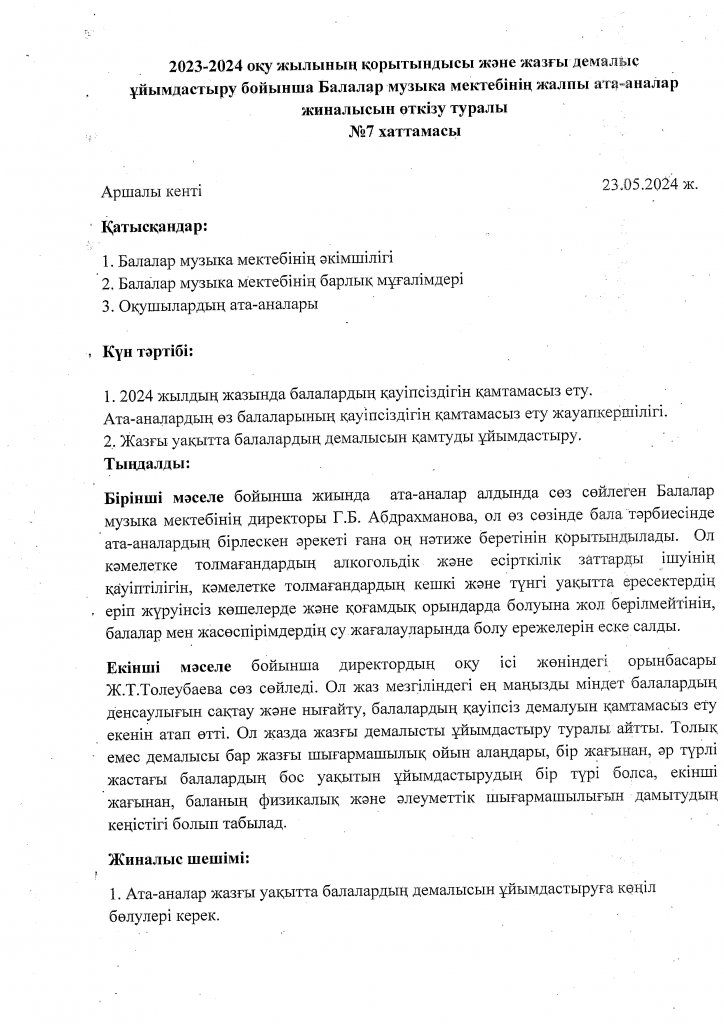 2023-2024 оқу жылының қорытындысы бойынша БММ жалпы ата-аналар жиналысын өткізу туралы хаттамасы